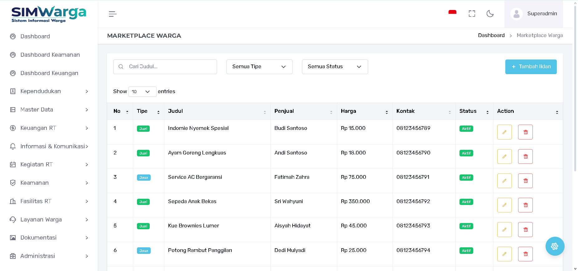 Penjual: Nama warga yang bertanggung jawab atas iklan tersebut.